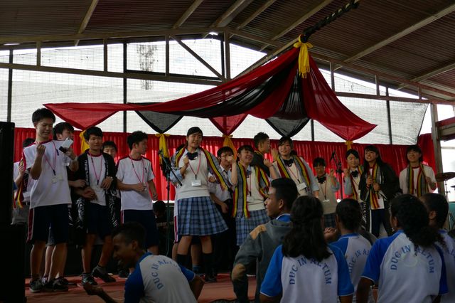 その後St. PETER高校の生徒さんの歌やパフォーマンス、ダンスなどを楽しませていただきました。また、日本の歌を歌ってほしいとお願いされ、私はErikaさんと共に「小さな恋の歌」を歌いました。さらに、「恋するフォーチュンクッキー」を工学院生全員で歌い、踊りました。東ティモールでは英語のプレゼンなどよりも音のある物に興味があるようですね。日本には無いノリの良さとテンションを満喫する事が出来ました。