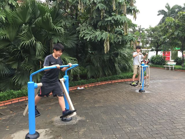 2017-03-31 【ベトナムMoG】8日目 グローバル教育 MoG(Misson on the Ground) ついに、明日プレゼンテーションの発表となります。各班は菅谷さんに進捗状況を相談して、貴重なアドバイスを頂きました。アドバイスの中にはキャッチフレーズでいかに人の気持ちを掴むかという話をして頂きました。午前中は明日に向けて準備をして、プレゼンテーションを作成しました。午後は少し気分転換がてら、現在 滞在しているタイホー地区を散策しました。 近くの公園で軽くエクササイズです。夕ご飯の食べた後は、 中間発表を行いました。中間発表で「伝え方」において改善点が多々見つかり、夜遅くまで生徒は作業していました。
