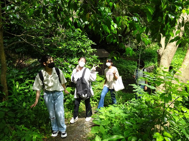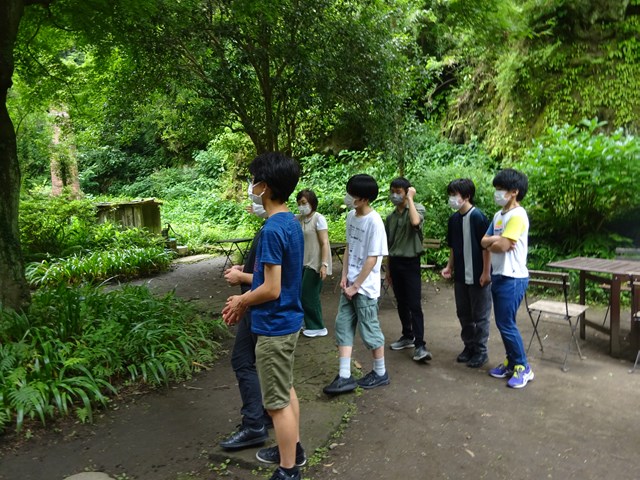 たからの庭の敷地内を散策です。浄智寺の敷地一部でもありとても広く生徒たちは探検気分です。