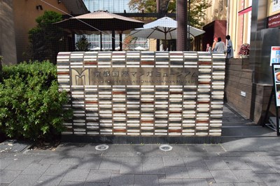 京都国際マンガミュージアムの中に入ると、昔のマンガから海外のものまで壁一面にマンガ本が並びます。
