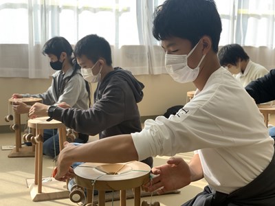 ・簡単な作業だと思っていたけど、コツがいるのだなと思った。後で組みひもの部屋を見せてもらったら、何本ものひもを使っていてとても綺麗だった。