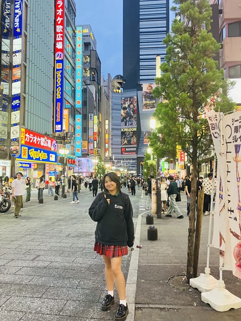 Going around Tokyo with Misha, my home stay buddy, was a wonderful experience. In Asakusa, we wore kimono and yukata and explored the streets. The temples and streets had the taste of Japanese and we took a lot of pictures there. We enjoyed the street foods too, especially the warabi-mochi drink. We also went to Shinjuku on Saturday after school. There, we were able to go to a cat cafe Misha was craving to go. On our way back to the station, she got a snap with Godzilla’s head.
