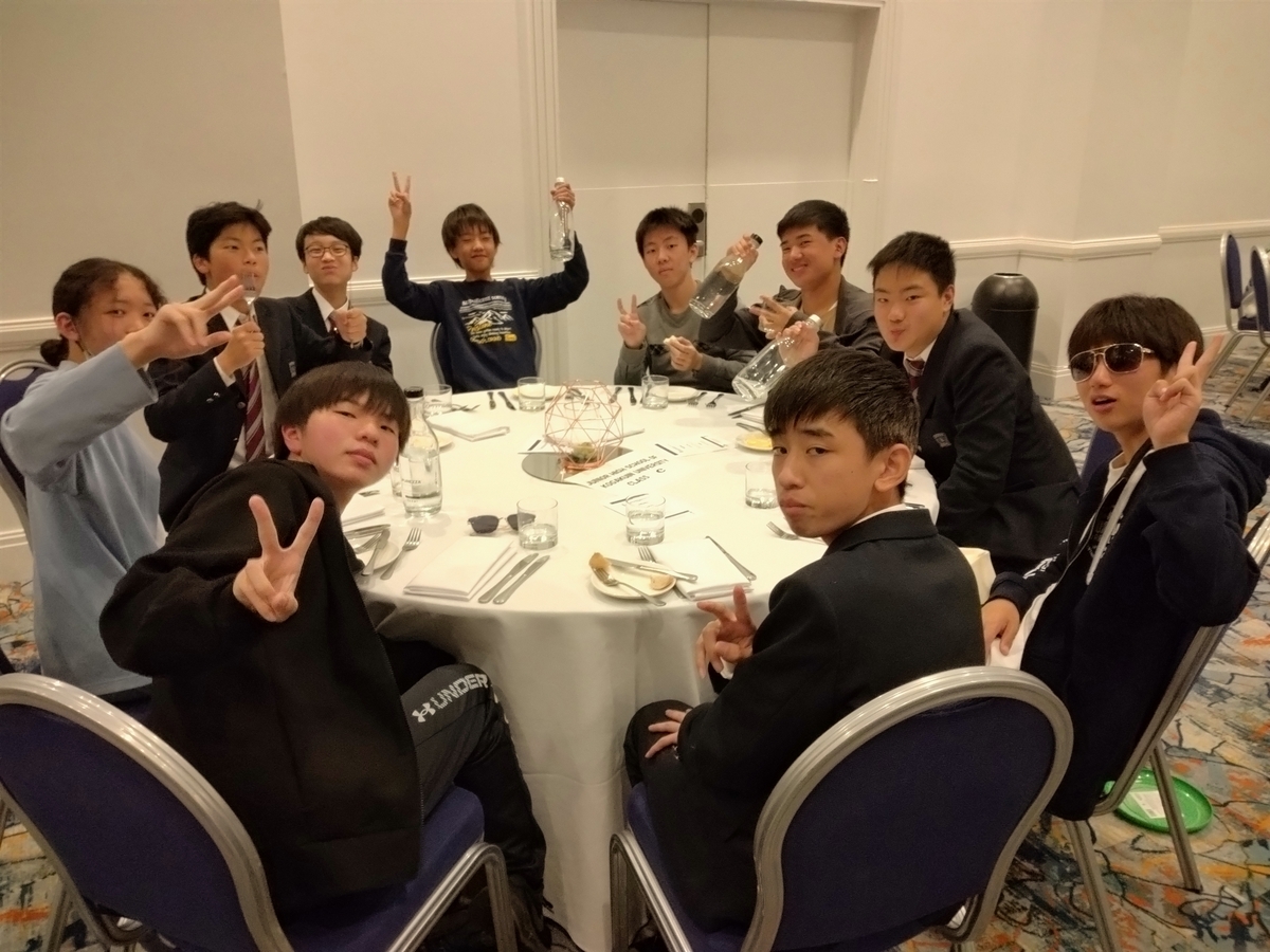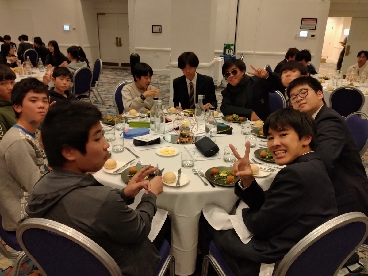 夕食。まるで宴会のよう!久しぶりにクラスメイトと一緒になり、会話も弾みます。