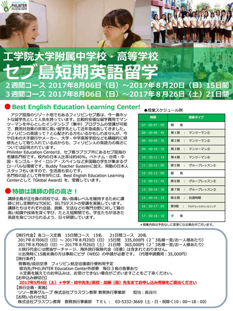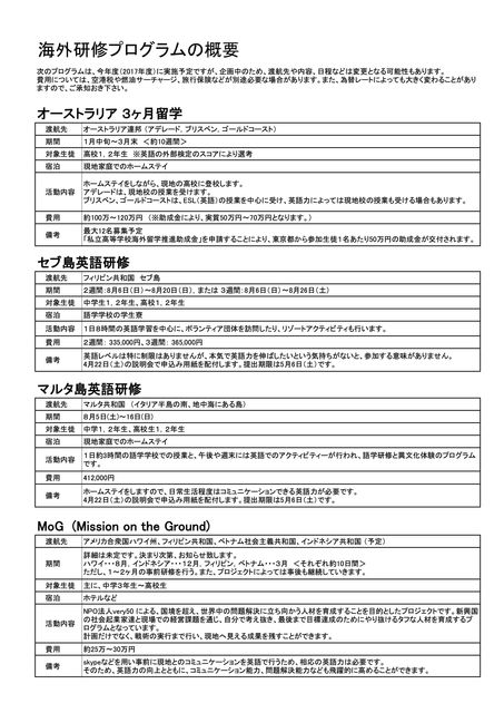 それぞれのプログラムには定員もありますが、一人でも多くの生徒が海外で異文化を体験し、新たな自分や考え方を発見し、グローバル社会への一歩を踏み出すことを期待しています。
