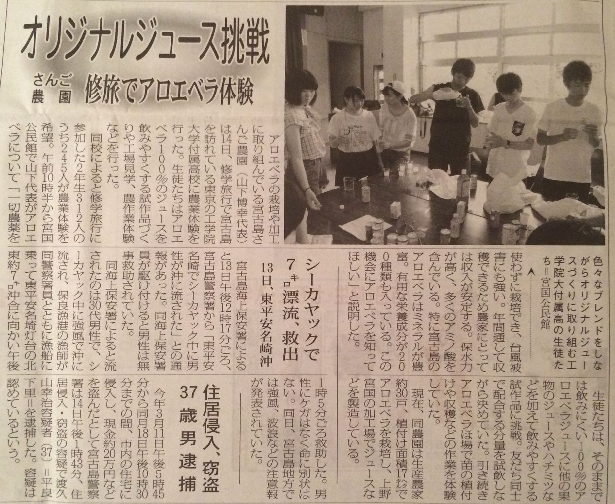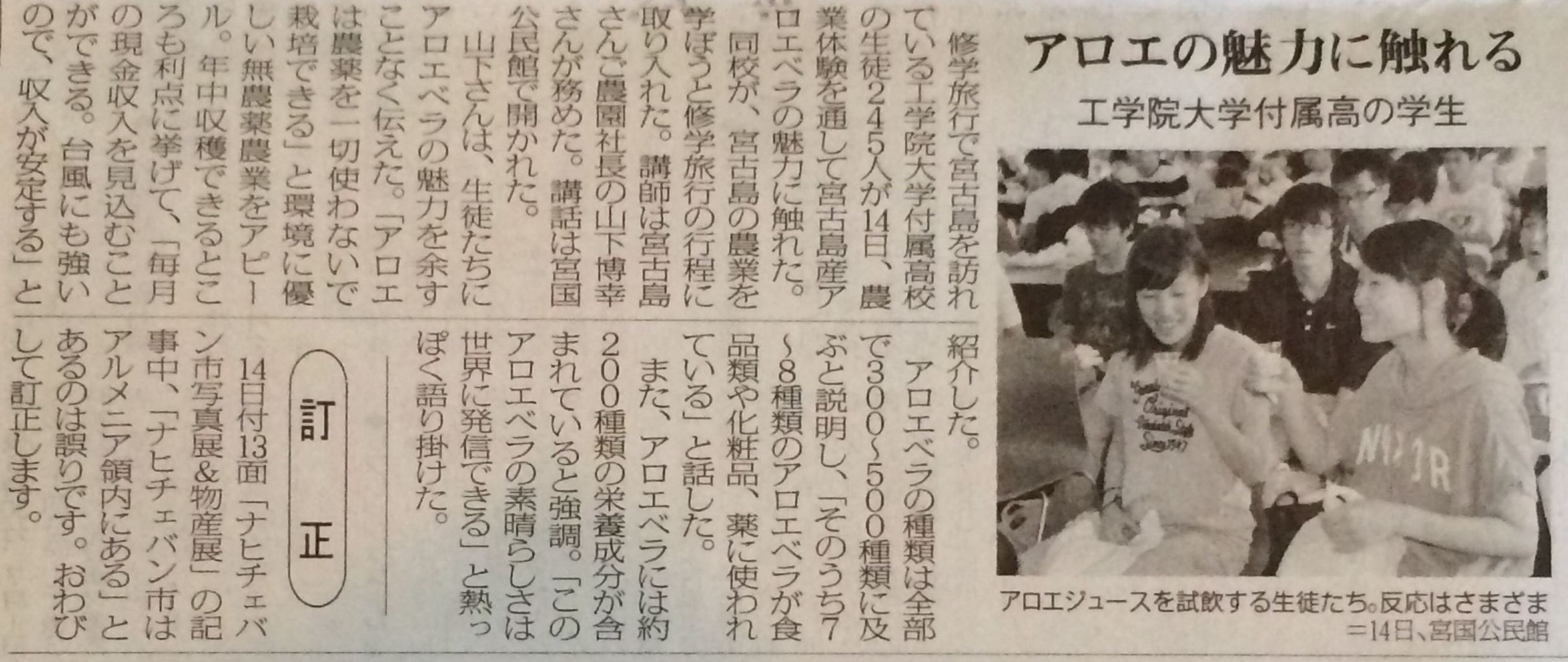 尚、昨日宮古で行ったアロエ体験の様子が宮古島の地元新聞紙「宮古新報」「宮古毎日新聞」の2紙に掲載されました。