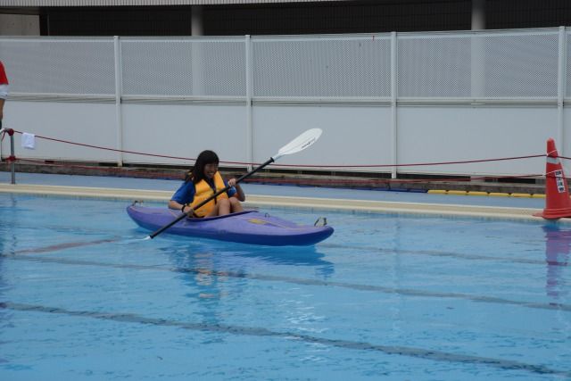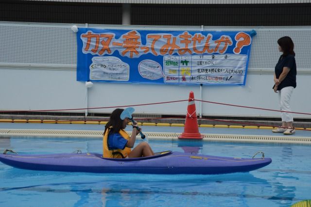 今日は雨の小降りですので、浮力コーナーではカヌー体験もできました。