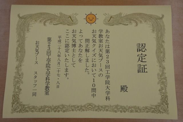 高得点だと、お天気博士の認定証をもらえます!